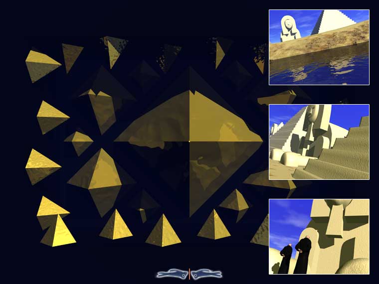 bilde und Pyramiden in Reih und Glied. In der Ferne läuft eine